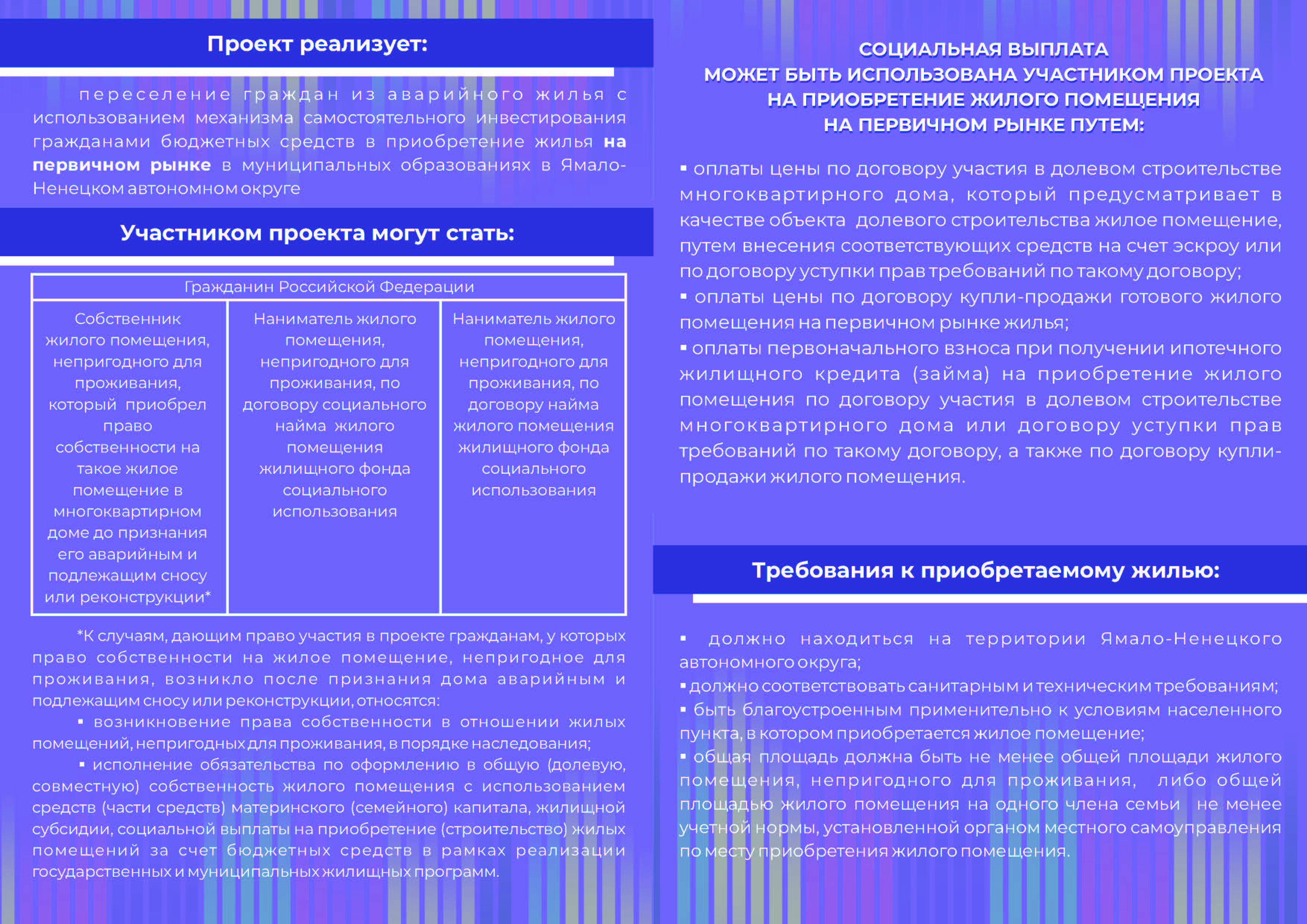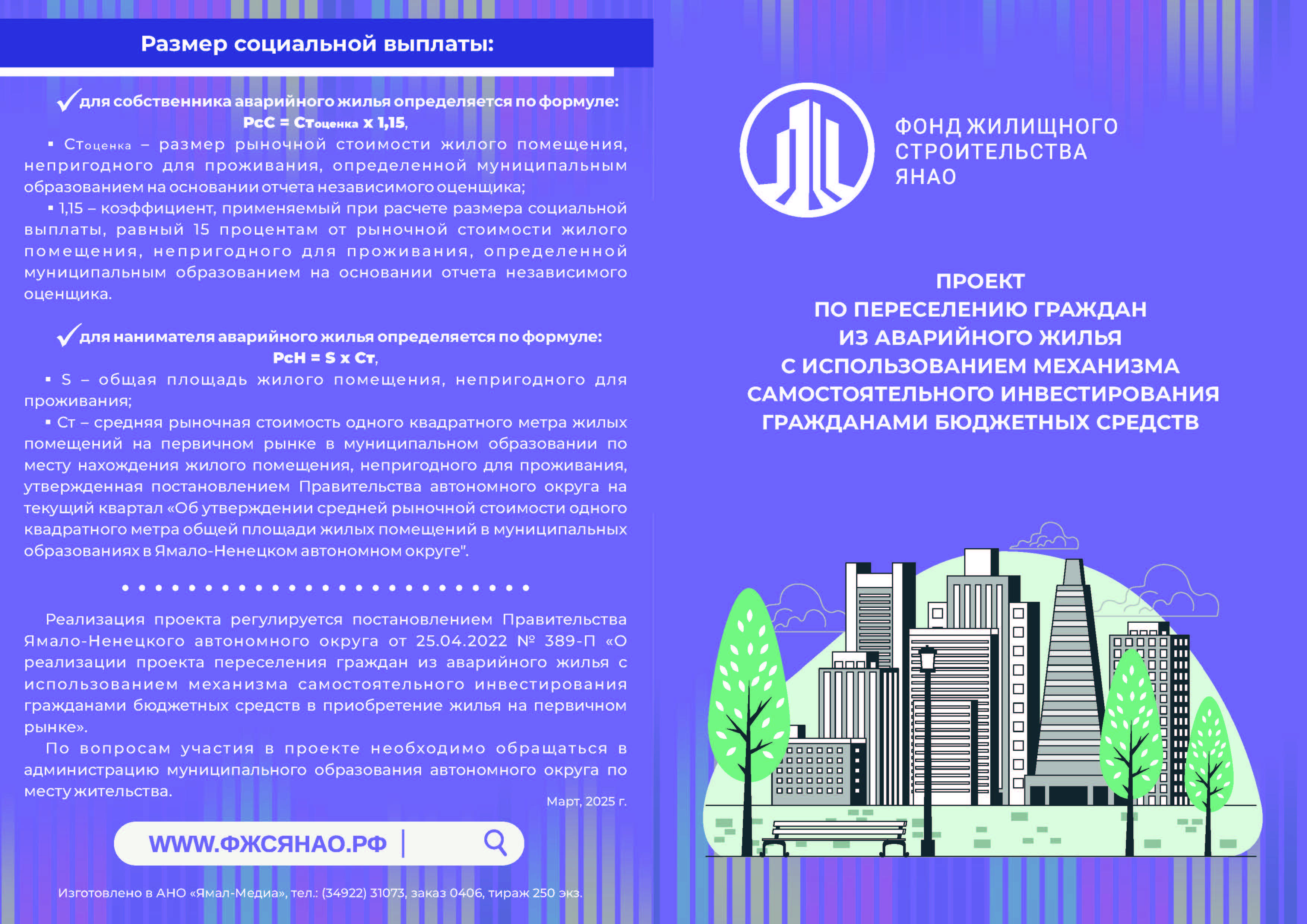 Все ответы на вопросы по теме «Проект по переселению граждан из аварийного жилья с использованием механизма самостоятельного инвестирования гражданами бюджетных средств» – в буклете, подготовленном некоммерческой организацией «Фонд жилищного строительства Ямало-Ненецкого автономного округа».