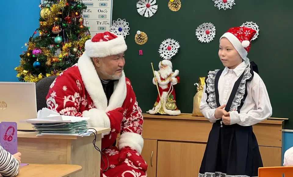 Депутат Эдуард Яунгад посетил поселок Зелёный Яр, где поздравил школьников и детей из детского сада с новым годом, примерив костюм Деда Мороза для создания праздничного настроения.