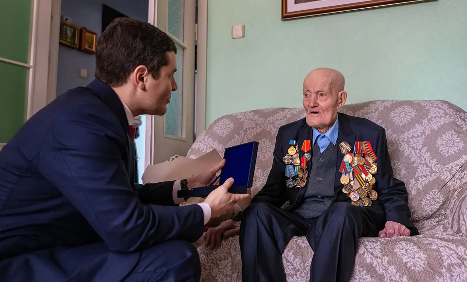 В День 80-летия Великой Победы глава региона лично поздравил 98-летнего фронтовика с праздником, а также вручил ему нагрудный знак, прилагающийся к награде Почетный гражданин Ямала.