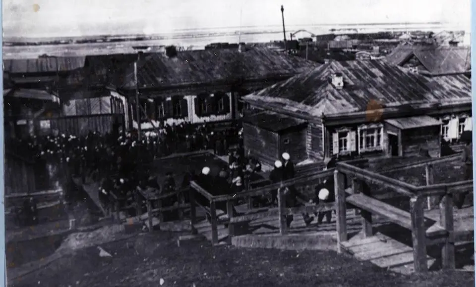 На фото: школьники спускаются по лестнице к зданию школы, 1930 год, тогда подгорная часть была застроена ещё купеческими особняками (архив школы № 1).