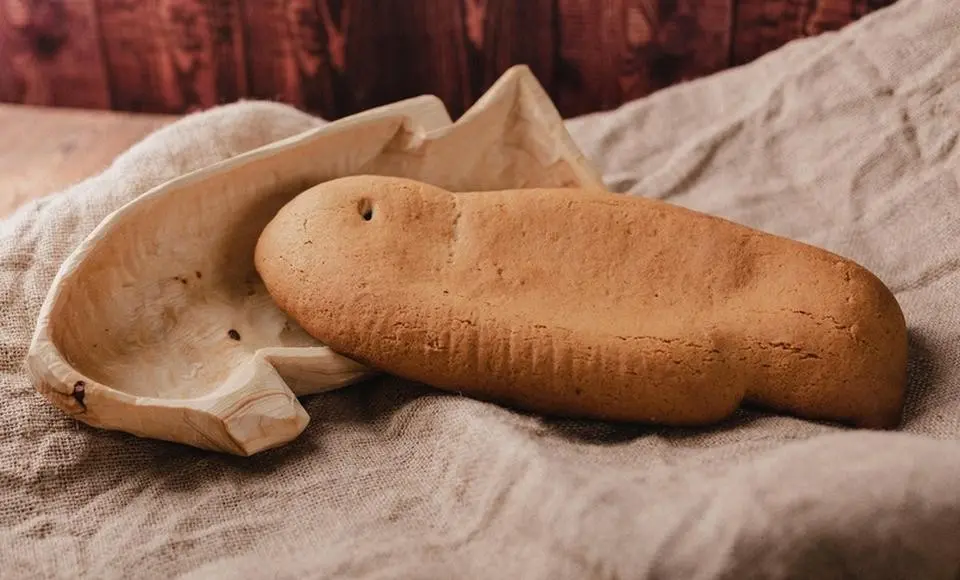 На вкусную идею вдохновила пряничная форма, найденная в Мангазее — первом русском городе Сибирского Заполярья. Прототипом печатной формы стал артефакт из легендарной Мангазеи. Выпекается пряник из медово-пряного теста по старинному рецепту XVIII века.