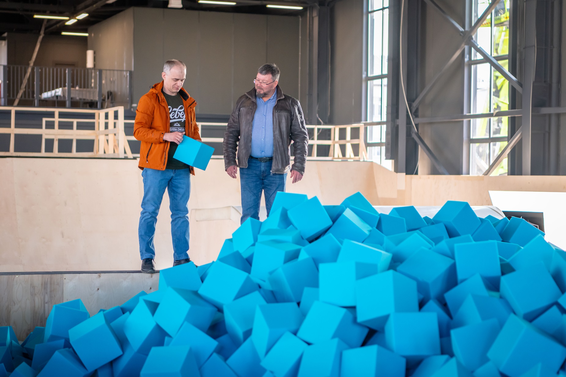 Оборудование – это горки, рамки, два батута, просторная зона паркура, в общем все необходимое для BMX-велосипедистов, скейтбордистов и роллеров.