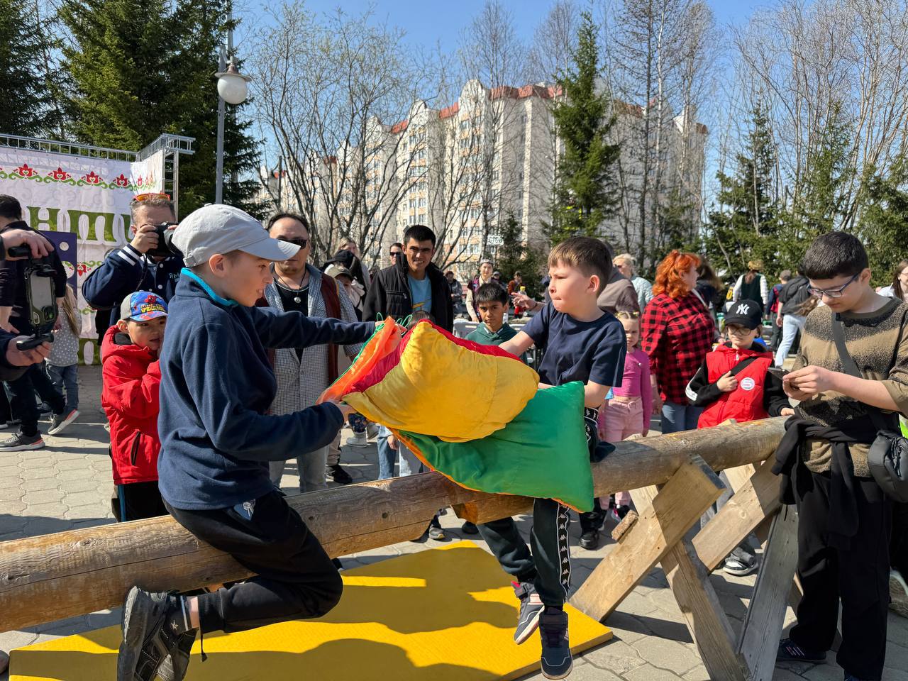 Мелодичные восточные мотивы – первый сигнал для горожан: пора на Сабантуй. А тёплая солнечная погода стала просто подарком. По традиции не обходится этот праздник без главного символа – длинного шеста, к которому привязывают полотенца.