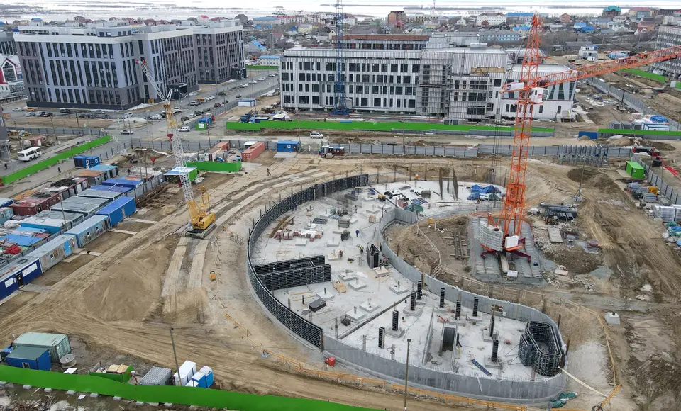 В микрорайоне Обдорский продолжается строительство современного детского сада на 240 мест. Здание отличается нестандартной архитектурой – оно выполнено в форме полумесяца. При строительстве в основании объекта использована монолитная железобетонная плита без применения свай.