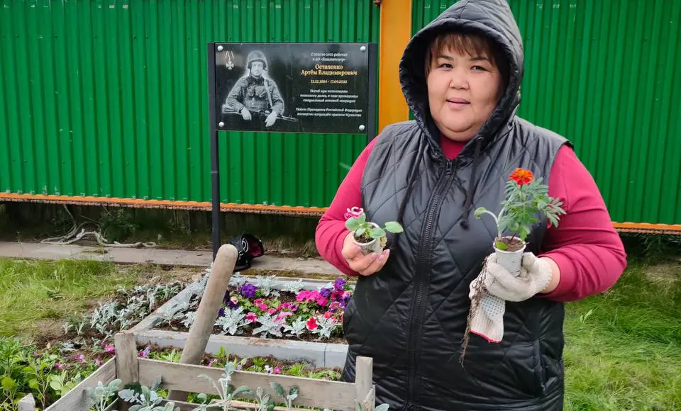 Через социальных координаторов установили мемориальную плиту и облагородили клумбы на могиле погибшего воина.