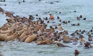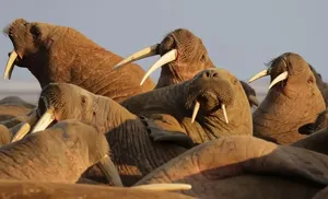 Отметим, что в 2019 году на Ямале было обнаружено крупнейшее материковое лежбище атлантических моржей, где, согласно последним данным, на берег Карского моря вышло около пяти тысяч морских млекопитающих.