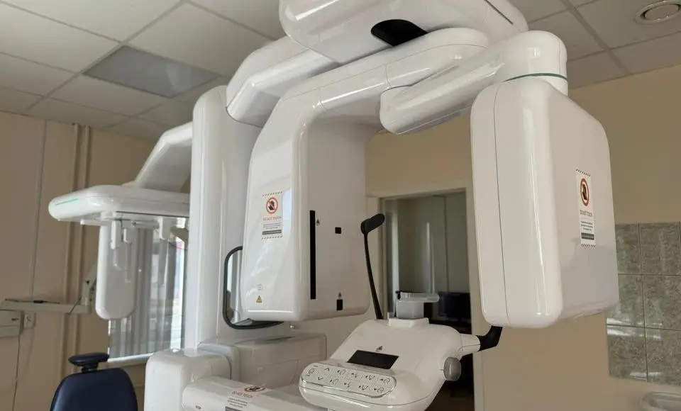В стоматологическом отделении была установлена передовая аппаратура, включая современный конусно-лучевой компьютерный томограф. Он позволяет получать высококачественные цифровые изображения челюстно-лицевой области для точной диагностики, планирования имплантации и лечения различных заболеваний.