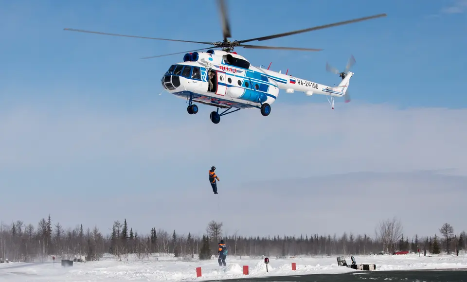 В Салехарде прошли ежегодные учения Ямалспаса для оперативного реагирования в труднодоступной местности. Тренировочный процесс состоит из двух этапов: сначала тренируются спускаться с 10-метровой вышки, имитирующей вертолёт, а затем выполняют реальные спуски с высоты от 10 до 40 метров с борта Ми-8, способного за один рейс доставить две группы по три спасателя.