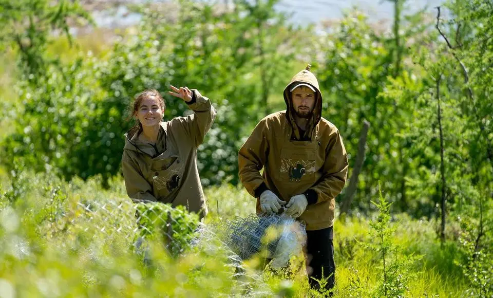 Всего на территории природного парка два вольера, протяженность каждого кораля – 10 километров. Волонтеры первой группы в июле установили двадцать опорных столбов, закрепили сетку-рабицу. Благодаря труду активистов возле озера Ядхыто появилось новое ограждение – 234 метра. Кроме того, добровольцы подключились к восстановлению крыш нескольких зданий, сортировке строительных материалов.